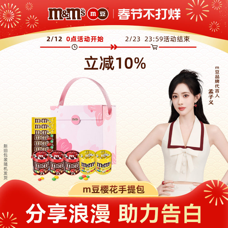 mm豆巧克力樱花礼盒送女友礼物粉色手提包m豆巧克力豆零食糖果
