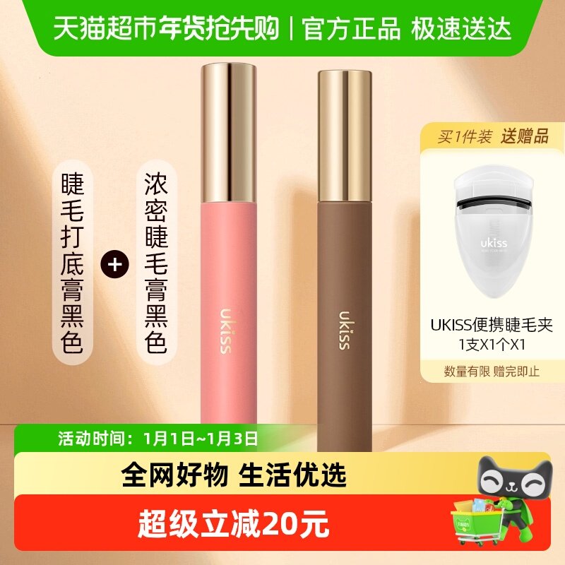 UKISS【睫毛打底膏自然黑+浓密睫毛膏自然黑】卷翘持久定型不晕染
