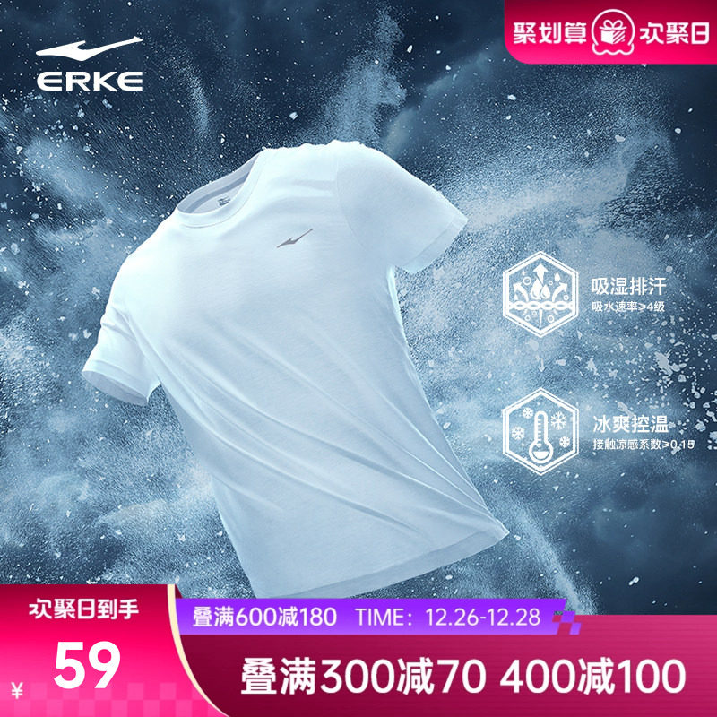 鸿星尔克速干短袖男夏季新款男士跑步冰丝速干衣t恤男生运动上衣