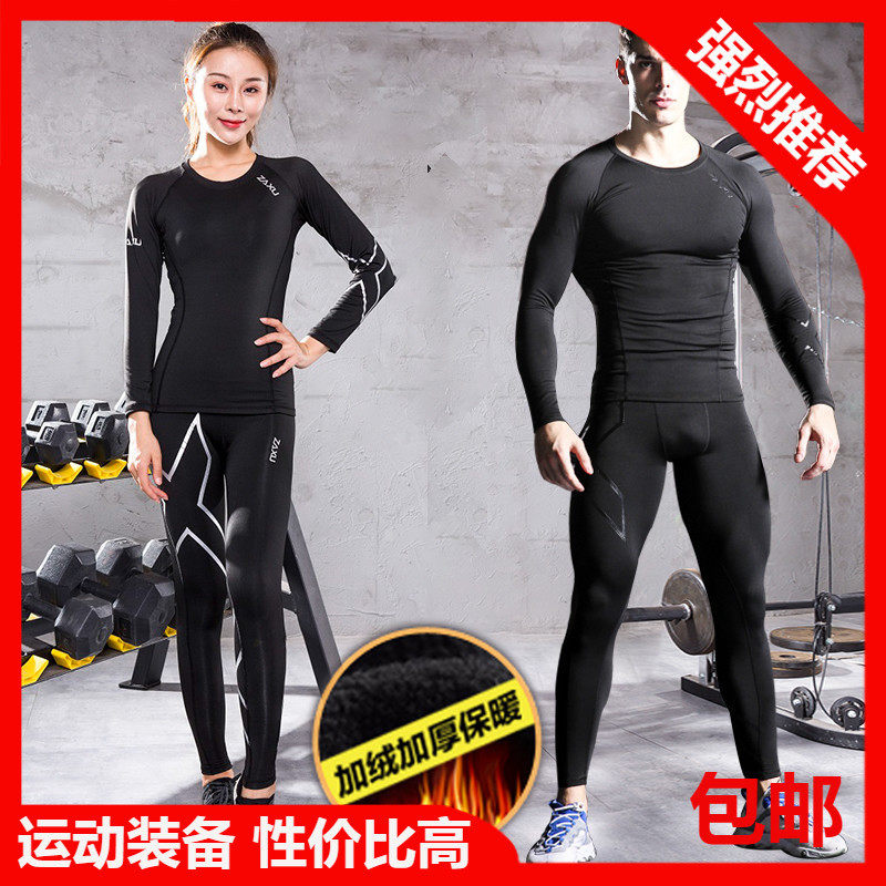 新款ZAXU男女秋冬加绒高弹保暖跑步健身瑜伽运动紧身衣压缩衣套装