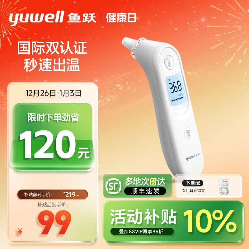 • 泡美丽»»鱼跃耳温枪电子体温计无水银医用家用高精准老人婴儿童专用YHT101