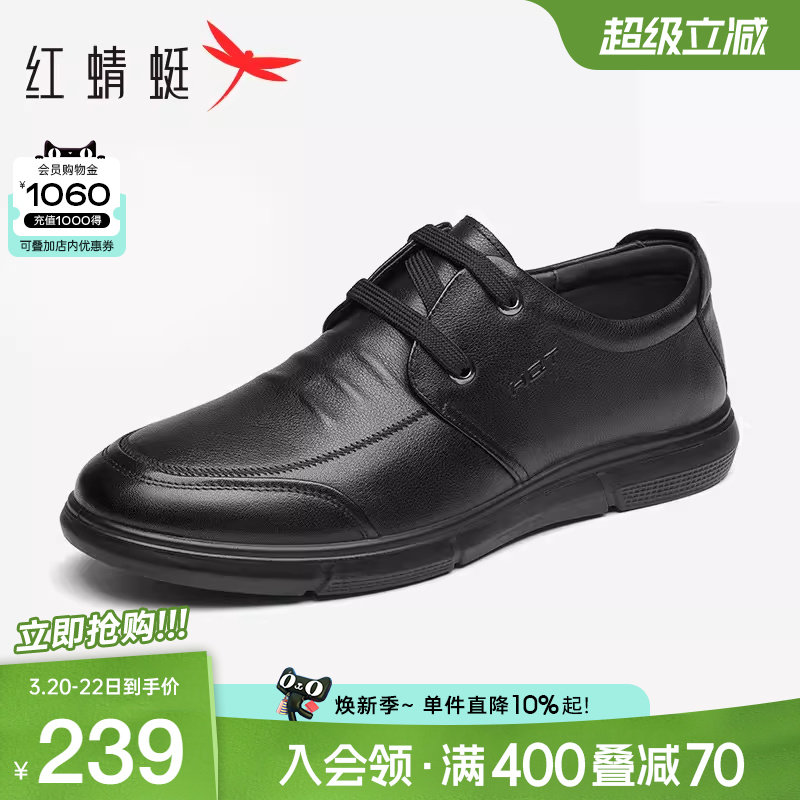 • 泡美丽»»红蜻蜓男鞋春季真皮休闲皮鞋男士软底一脚蹬鞋子休闲鞋中年爸爸鞋