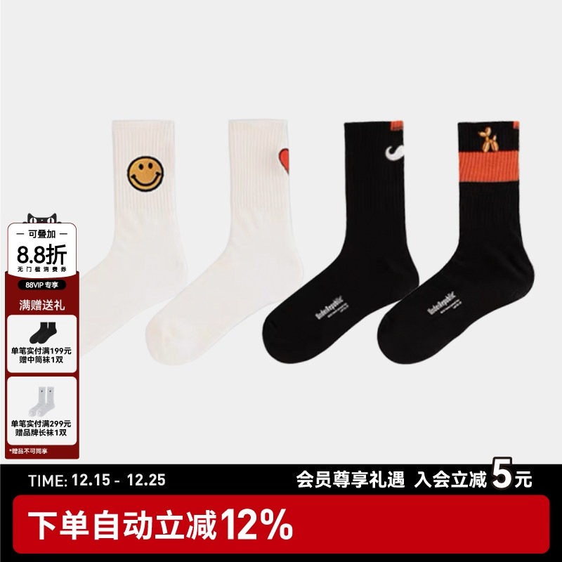 内衣共和新款春夏季男士运动中筒长筒女士吸湿透气纯色长袜棉袜