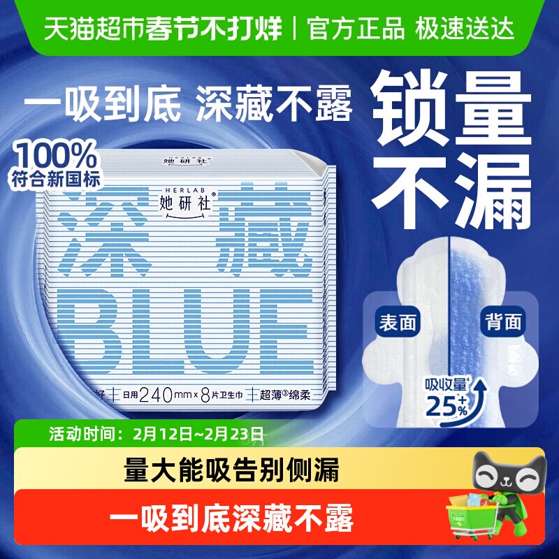 她研社卫生巾深藏BLUE姨妈巾量大日用超薄干爽防漏