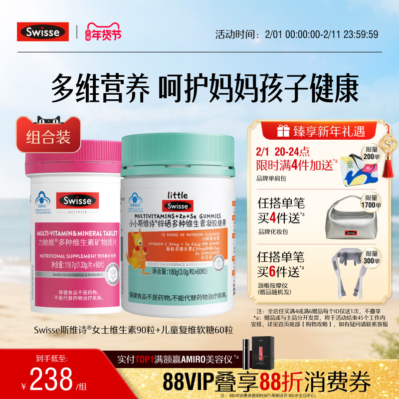 Swisse斯维诗蓝帽儿童复合维生素补锌男女士维生素e维b免疫力官方