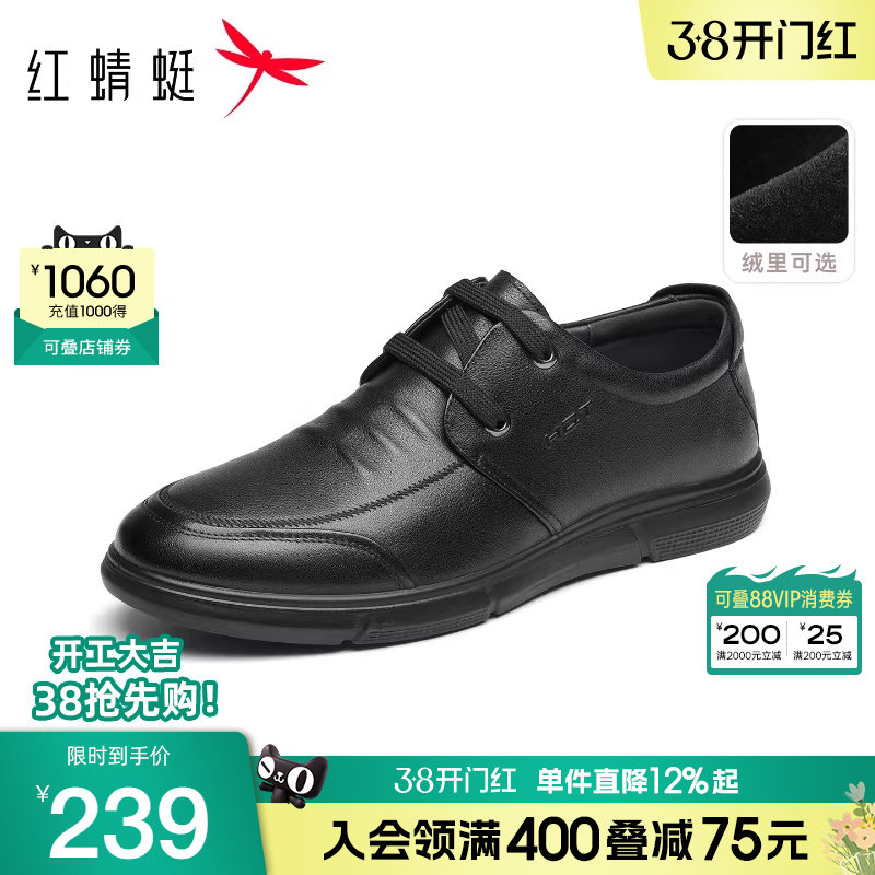 红蜻蜓男鞋冬季真皮休闲皮鞋男士软底一脚蹬鞋子休闲鞋中年爸爸鞋