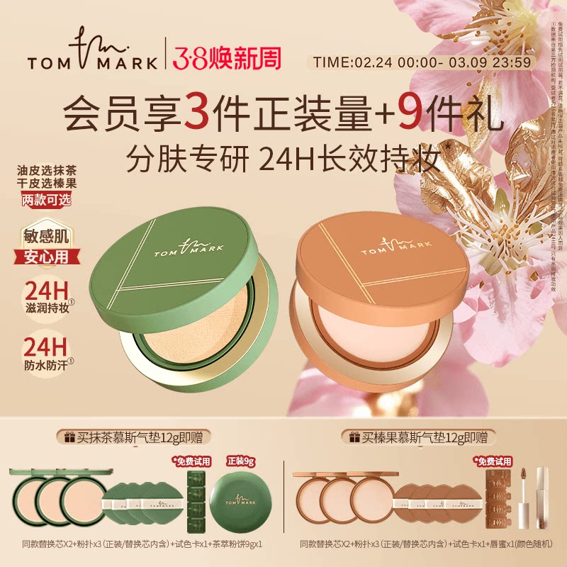 【38开门红】TOMMARK抹茶榛果气垫BB霜干皮油皮持妆粉底唐魅-TMK