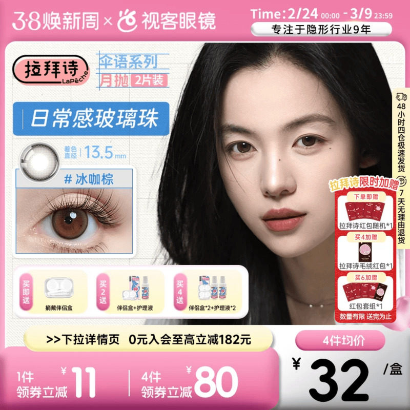 LaPeche拉拜诗伞语月抛2片三色美瞳彩色隐形眼镜大小直径夜夜生黑