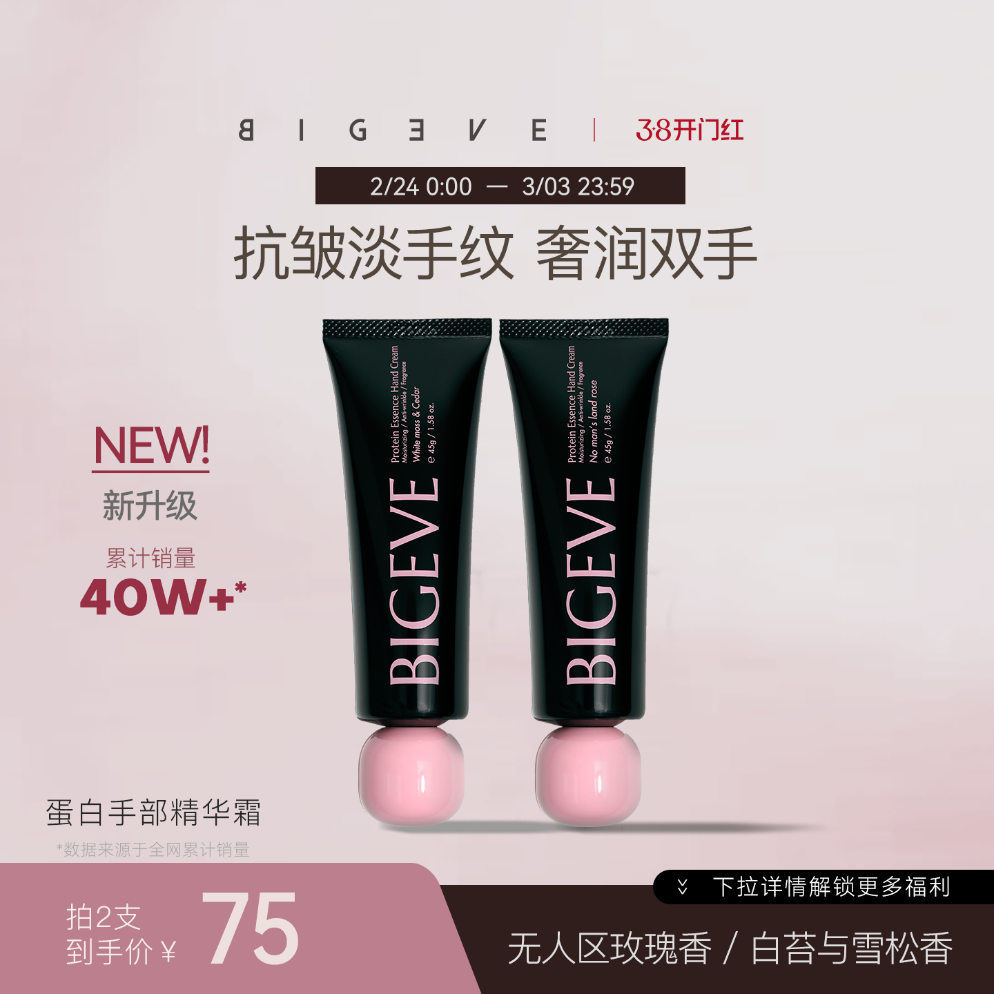 【新品抢购】BIGEVE张大奕少女手蛋白手部精华保湿淡纹抗皱护手霜