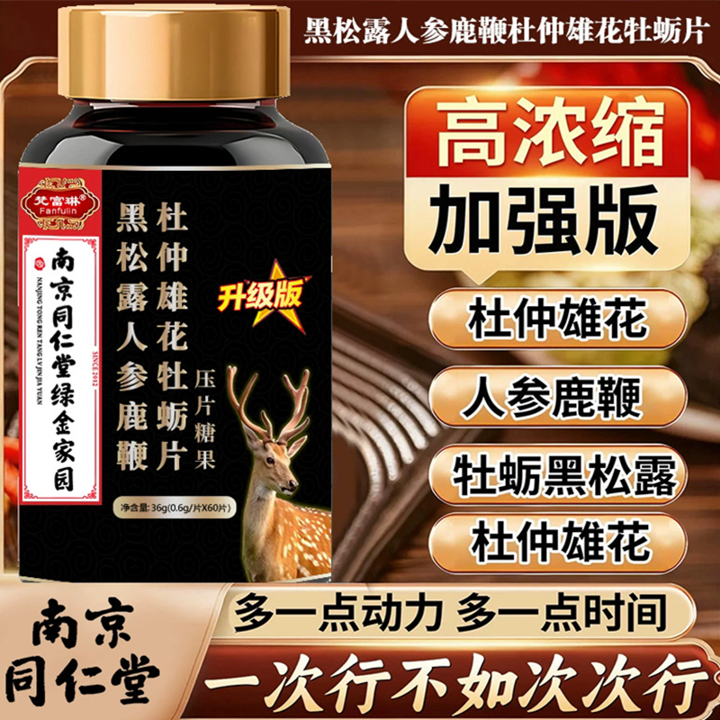 同仁堂黑松露人参鹿鞭杜仲雄花牡蛎片压片糖果体力男性活力高浓缩