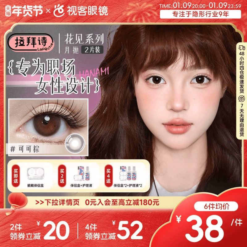 LaPeche拉拜诗花见月抛美瞳女1片*2盒职场日常小直径彩色隐形眼镜