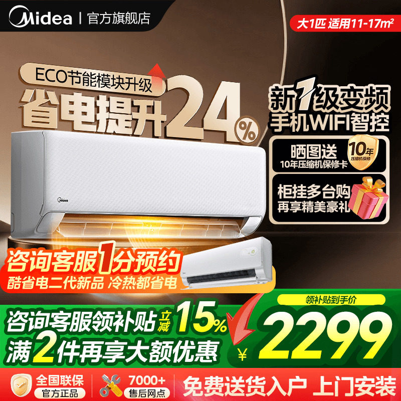 美的空调新一级变频家用大1匹1.5匹挂机酷清凉官方旗舰店