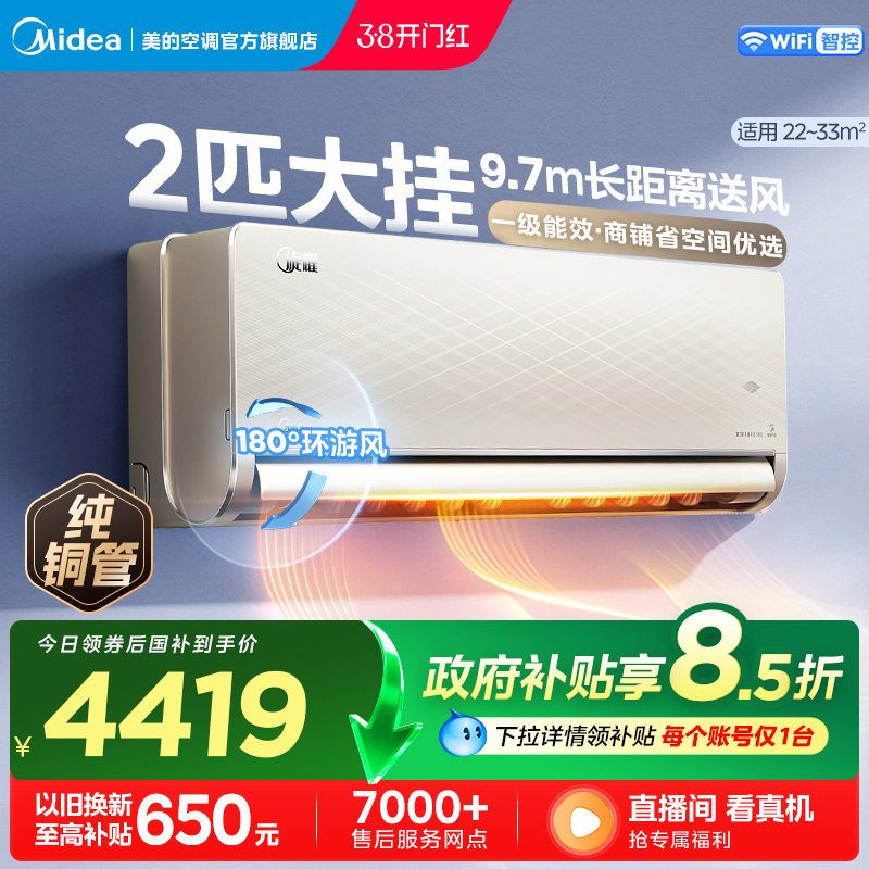 美的空调官方旋耀2匹挂机一级变频冷暖两用客厅壁挂式50大挂MXA1