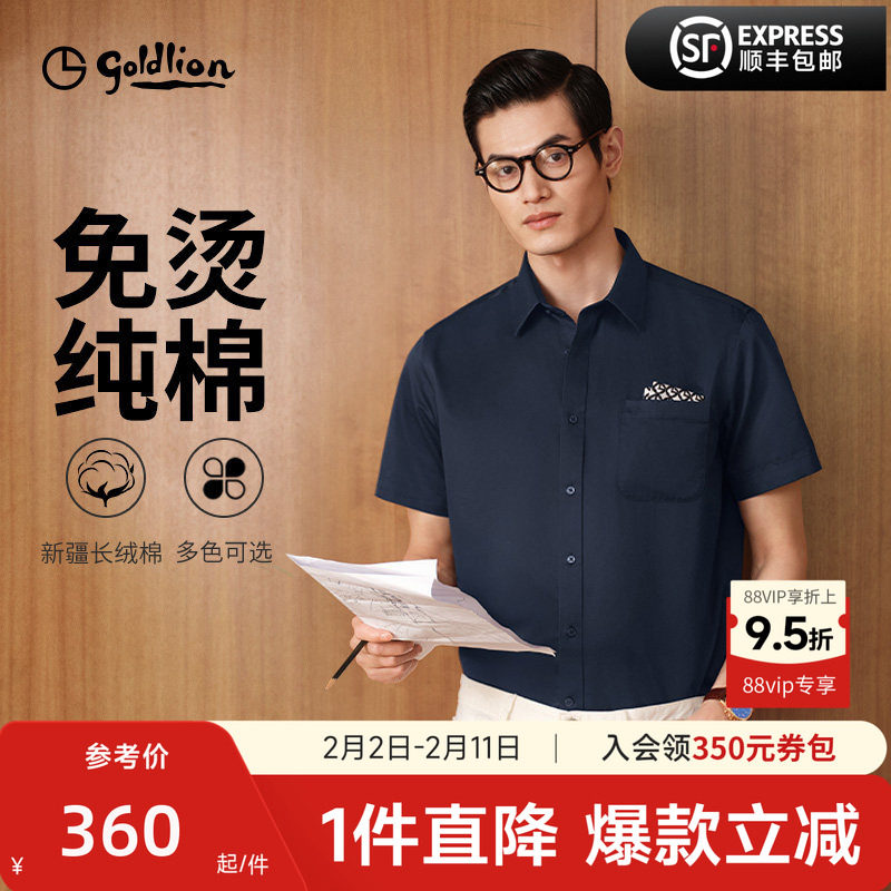 【3D免烫二代衬衫】金利来夏商务易打理纯棉衬衣休闲短袖白衬衫男