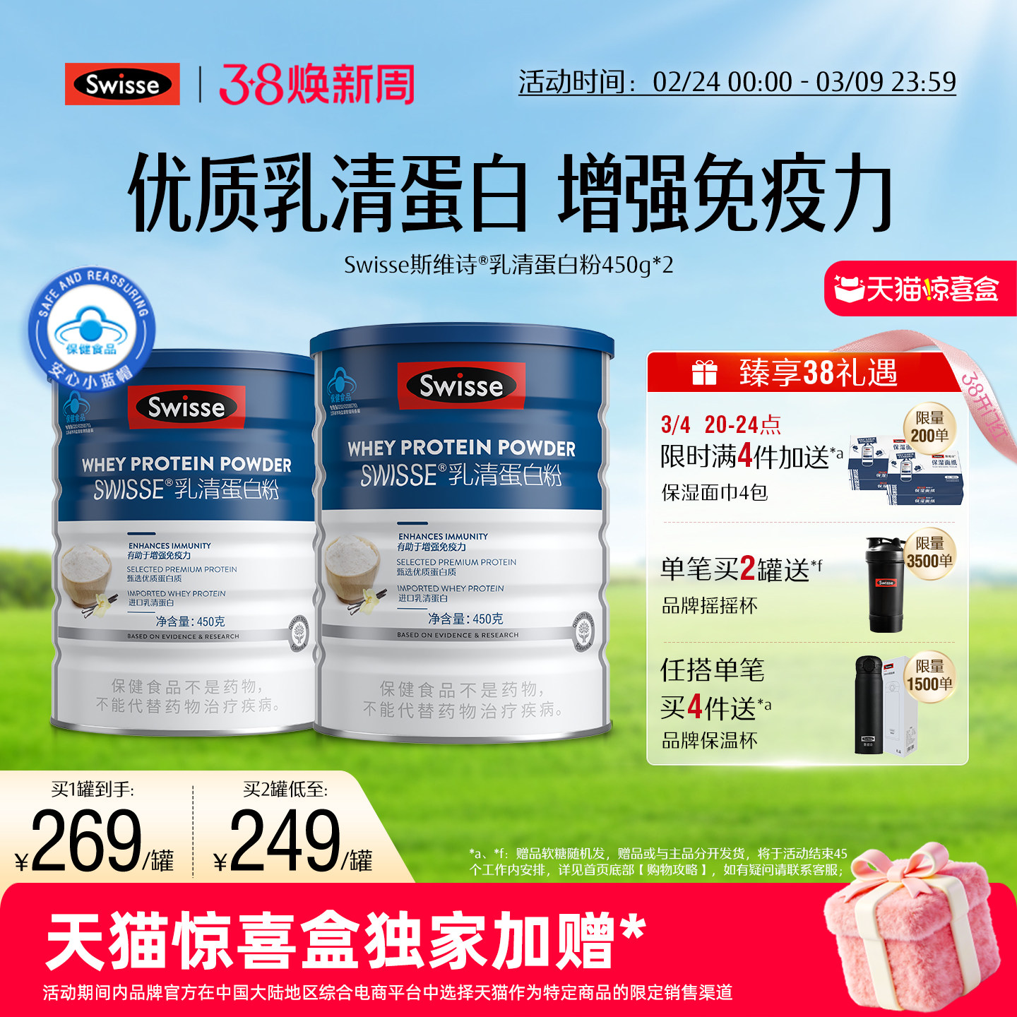 【天猫惊喜盒】Swisse斯维诗乳清蛋白质粉礼盒中老年增强免疫力