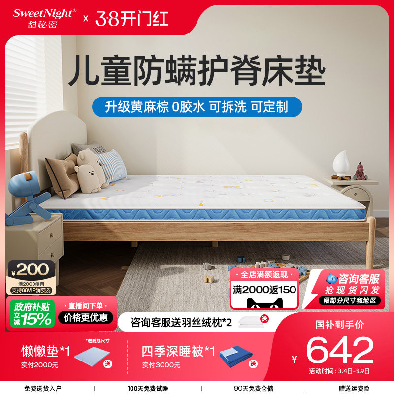 sweetnight甜秘密儿童床垫护脊专用无甲醛超标硬椰棕防螨乳胶定制