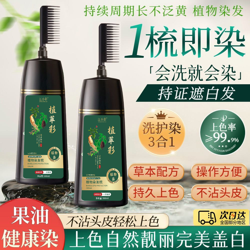 一梳黑正品植物染发剂盖白发一梳彩不沾头皮自然物萃取染发流行色