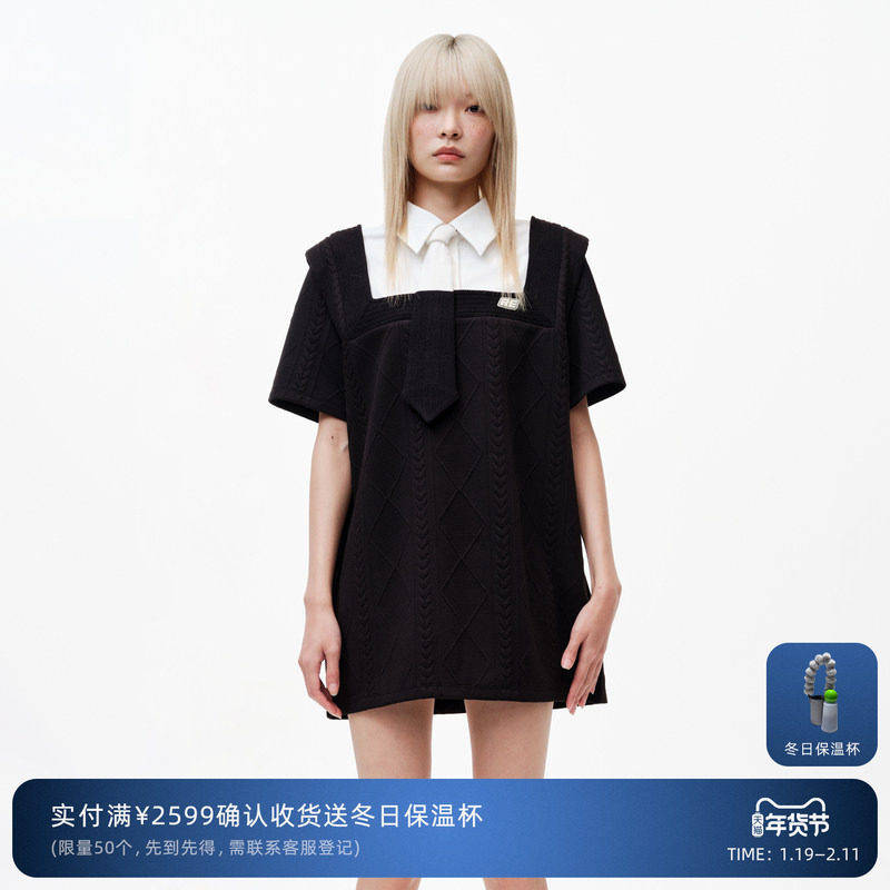 REVAN芮范设计师款学院撞色拼接领连衣裙RN31101013