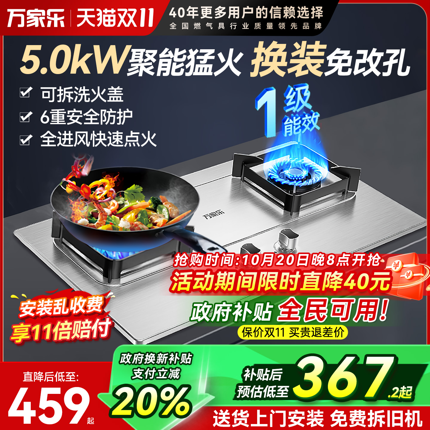 万家乐AY5G燃气灶双灶不锈钢灶台天然液化气灶嵌入式煤气家用AY4G