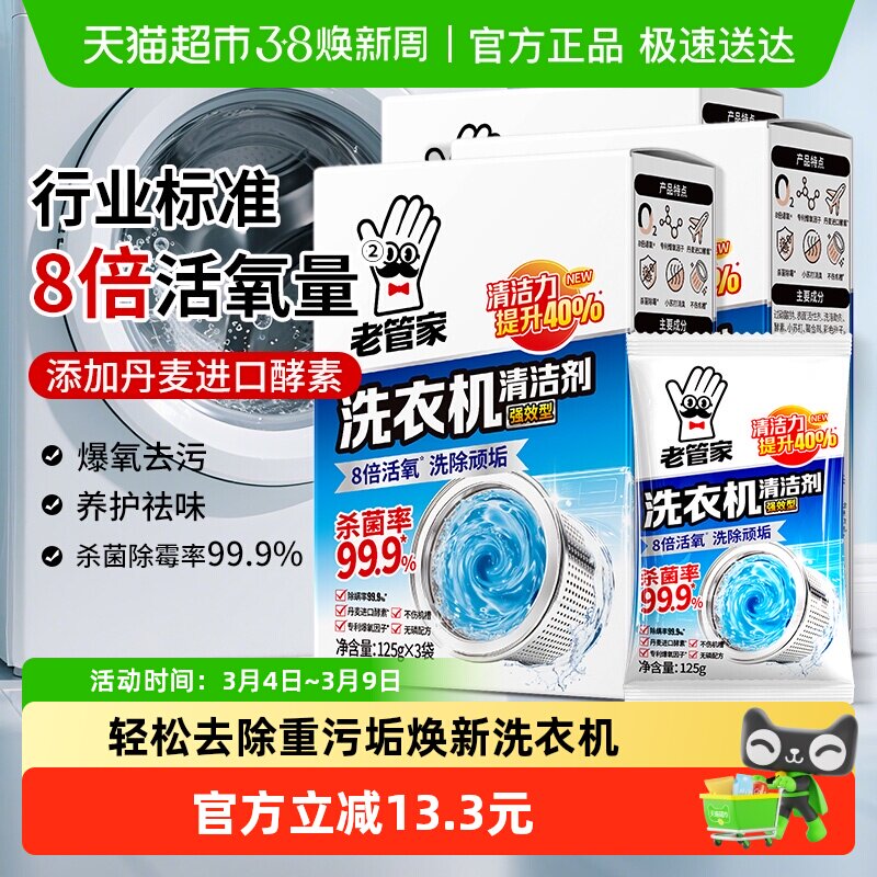 老管家洗衣机槽清洗洁剂强力除垢杀菌375g*3盒波轮滚筒家用除垢