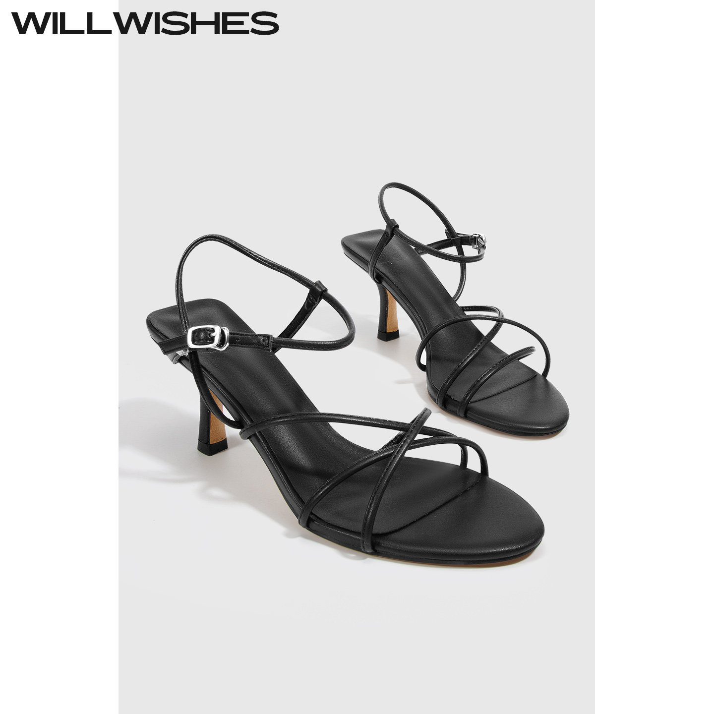 WILLWISHES 王玎设计一字带高跟鞋女夏气质不累脚细跟凉鞋#023-1
