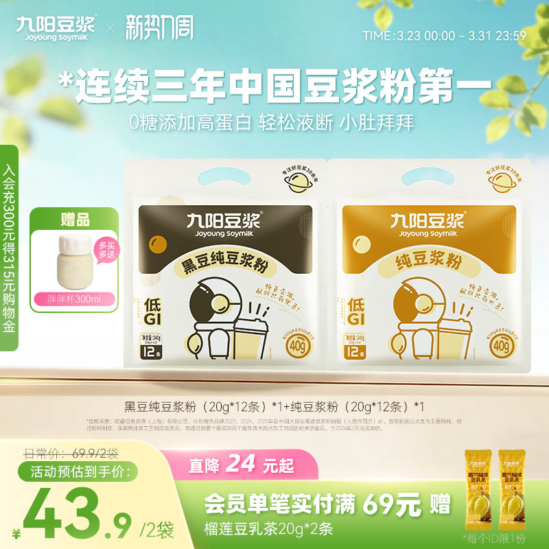 【0糖添加】九阳豆浆黑豆高蛋白原味纯豆浆粉无添加健身早餐孕妇