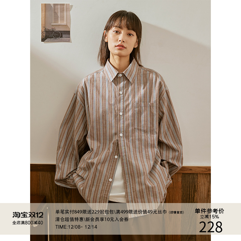 LR MADE 22AW古着感肌理条纹 日系简约色织复古宽松方领长袖衬衫