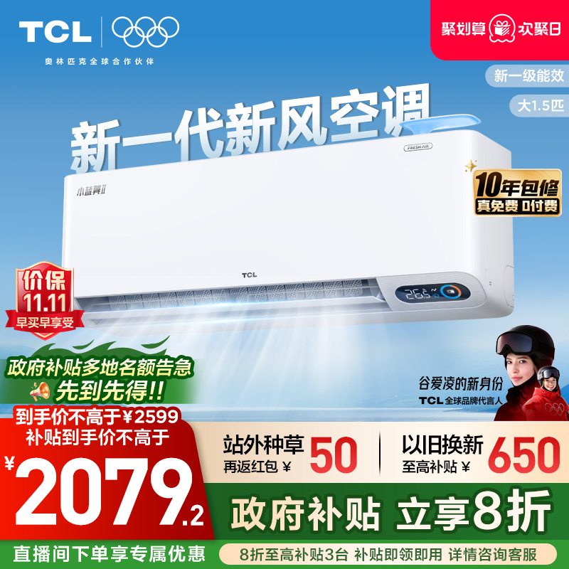 TCL 大1.5匹小蓝翼Ⅱ新风空调挂机60m³/h大新风量新一级能效变频