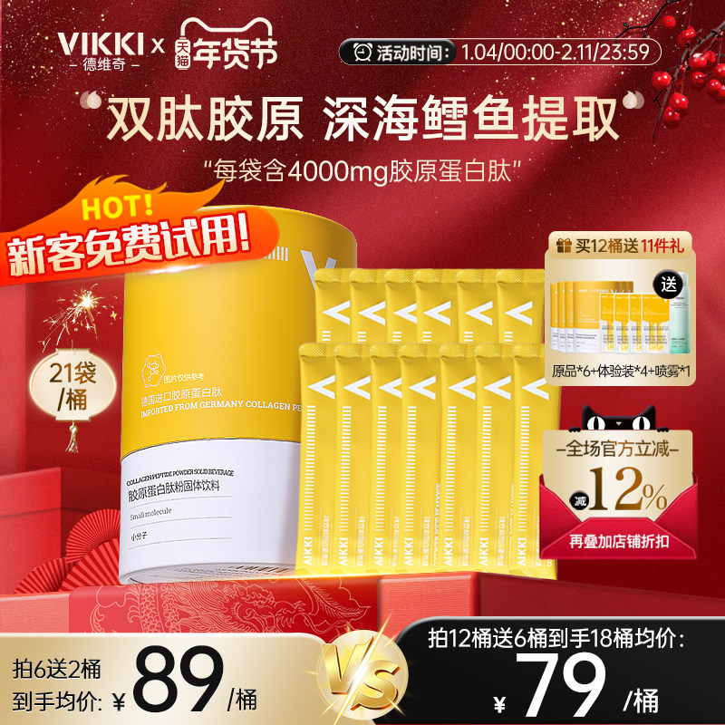 VIKKI德维奇胶原蛋白粉鳕鱼水解小分子三肽口服美容精华粉旗舰店