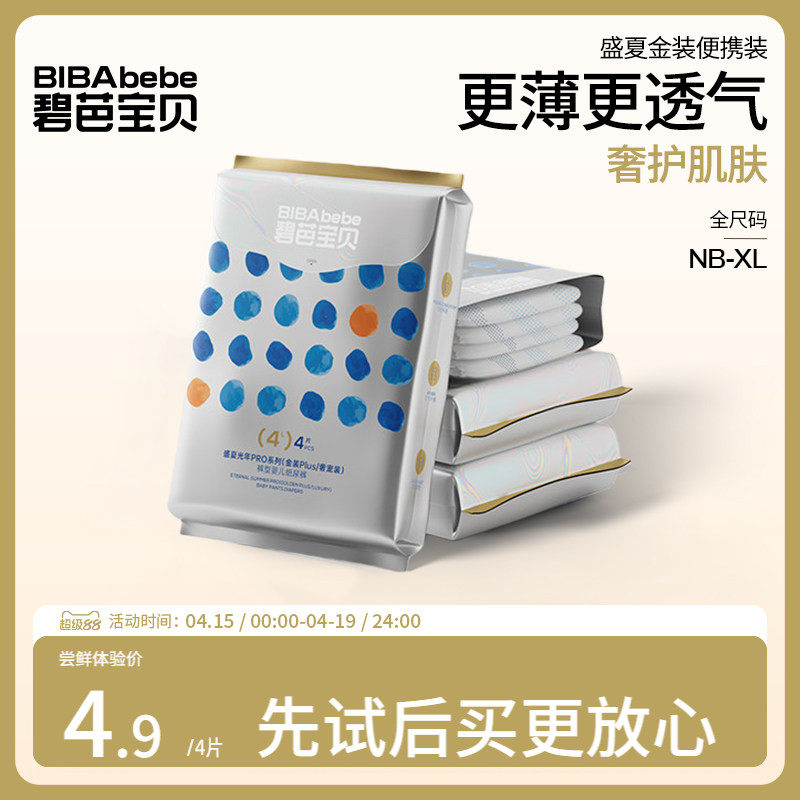 碧芭宝贝盛夏金装纸尿裤试用装新升级超薄超透气干爽尿不湿拉拉裤