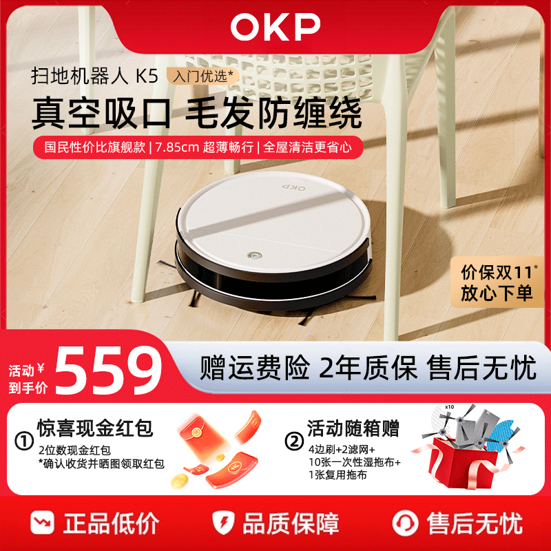 OKP K5扫地机器人智能家用全自动扫地拖地吸尘三合一体机不缠毛发
