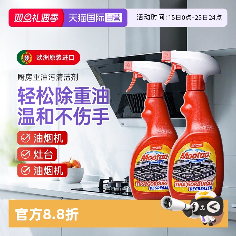 【自营】【2瓶装】Mootaa厨房去重油污强力清洗剂油烟机清洁除垢