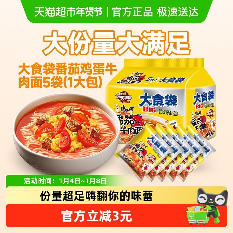 康师傅方便面大食袋番茄鸡蛋牛肉面袋装泡面速食食品