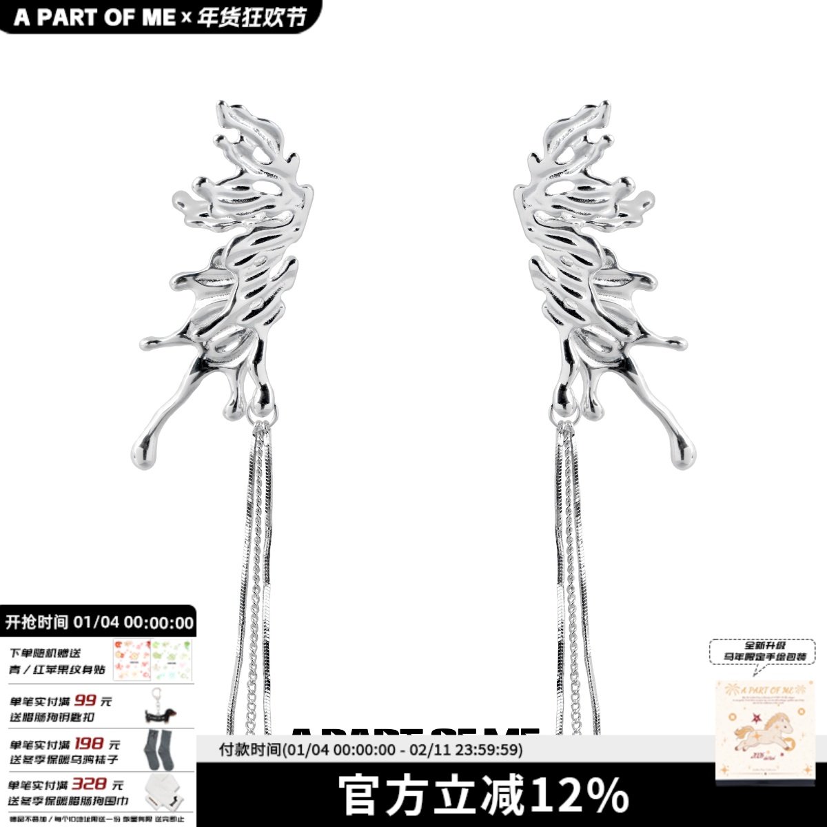 原创失灵蝴蝶耳环液体金属风耳夹流苏耳饰小众S925银针耳钉