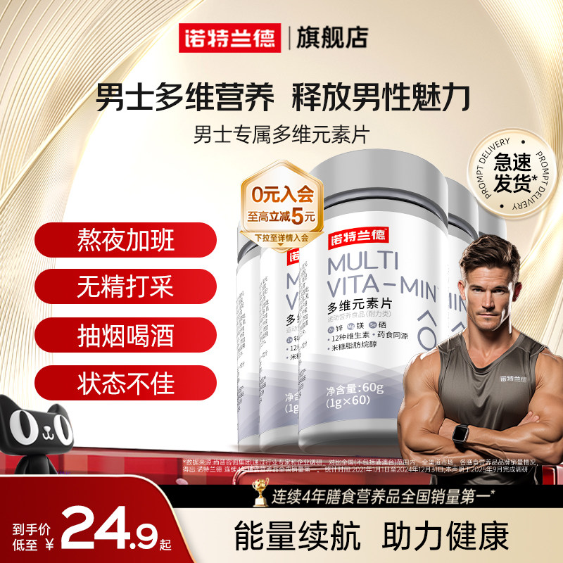 诺特兰德男士多维复合维生素B族男性锌镁多种矿物质官方正品代谢
