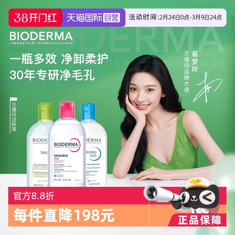 【自营】Bioderma/贝德玛洁肤液500ml敏感肌卸妆眼唇可用