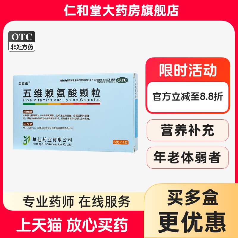 • 泡美丽»»速发】迈维希五维赖氨酸颗粒8包小儿童发育年老体弱营养补充