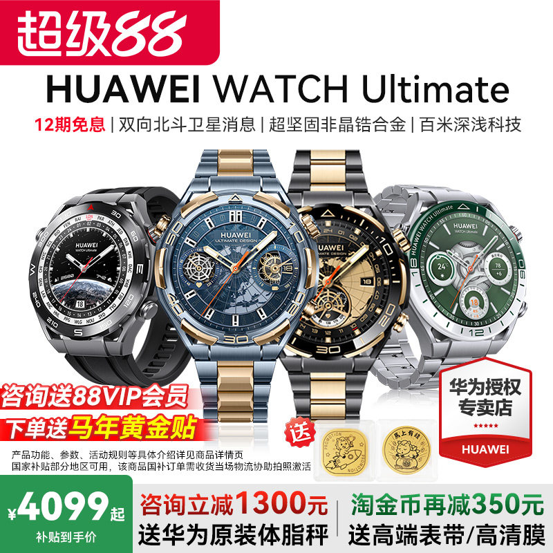 【咨询立减1850元】华为手表WATCH Ultimate非凡大师黄金智能腕表潜
