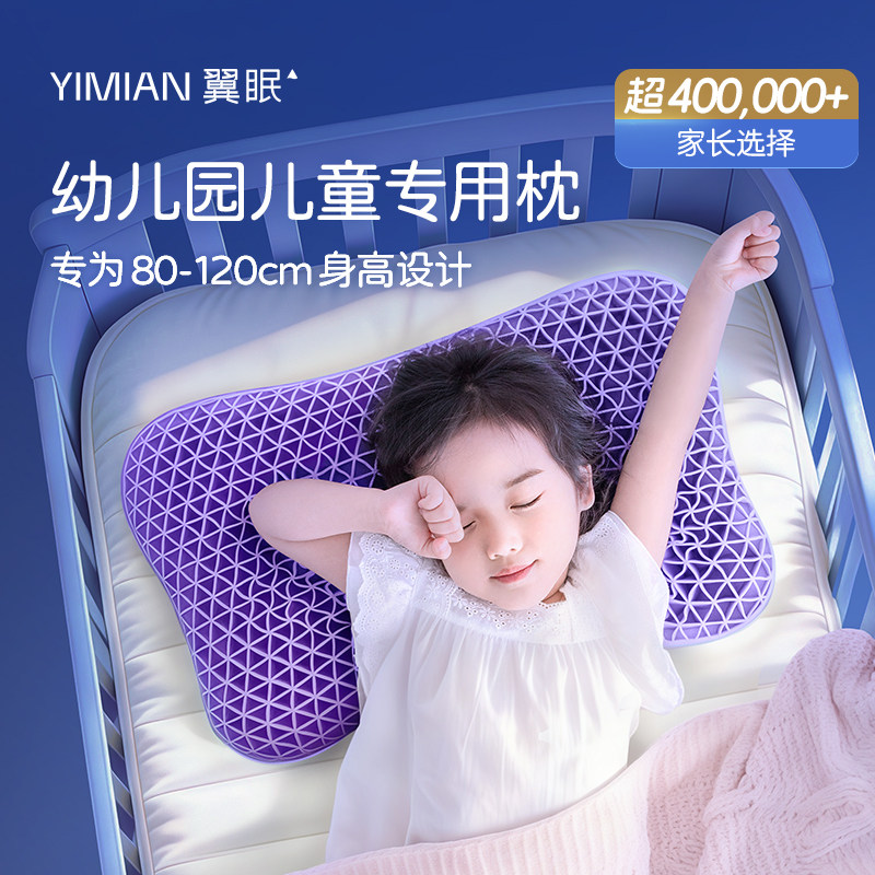 翼眠TPE深睡幼儿园枕头儿童格子枕宝宝专用枕云片枕透气非乳胶枕