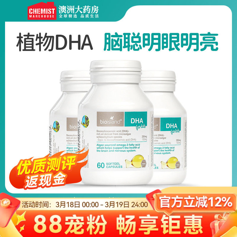 • 泡美丽»»澳洲bioisland佰澳朗德DHA藻油宝宝婴儿胶囊海藻油60粒*3瓶旗舰店