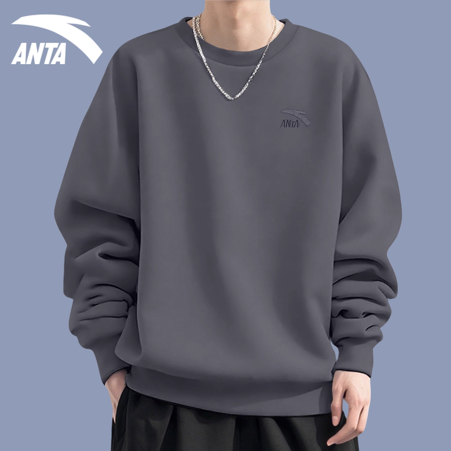 安踏卫衣男装加绒圆领长袖t恤秋冬2025新款旗舰店宽松休闲套头衫