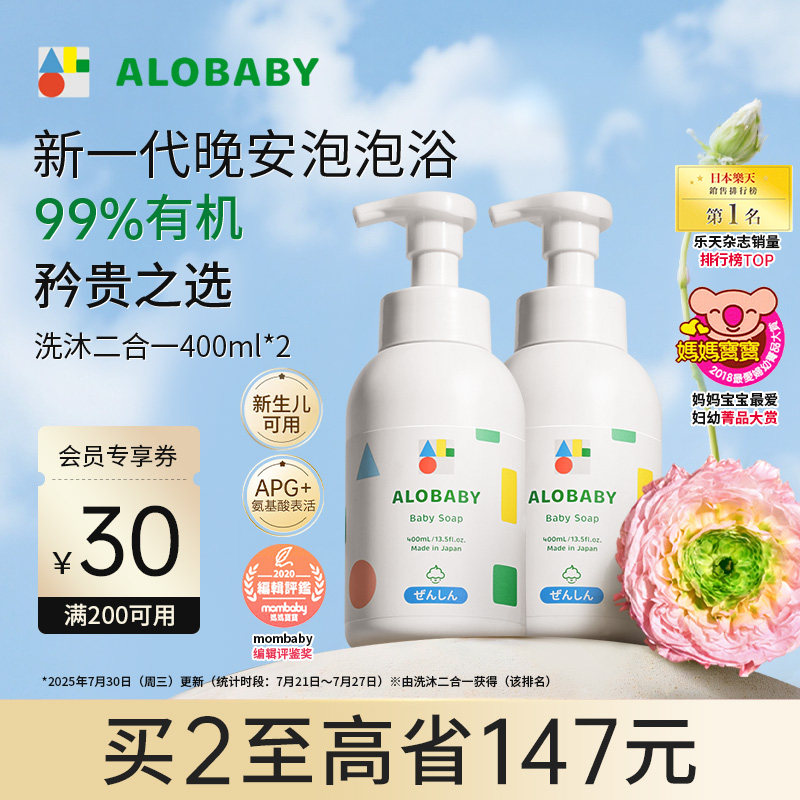 • 泡美丽»»alobaby婴儿洗护二合一宝宝洗发水沐浴露400ml*2