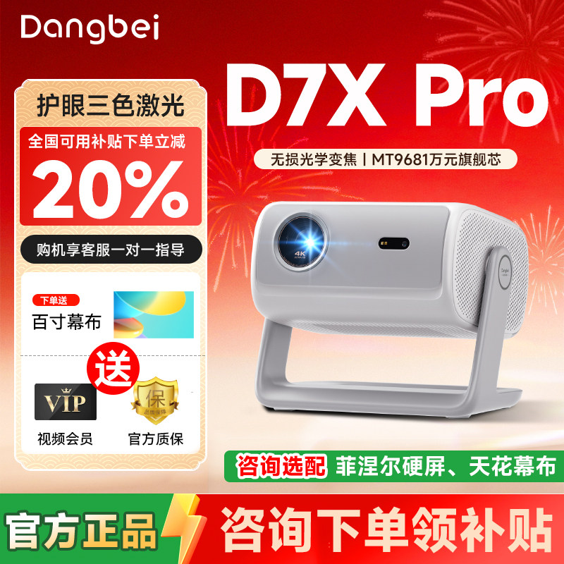 【全国可用补贴】当贝D7X Pro激光云台投影仪2025新品家用超高清高亮智能激