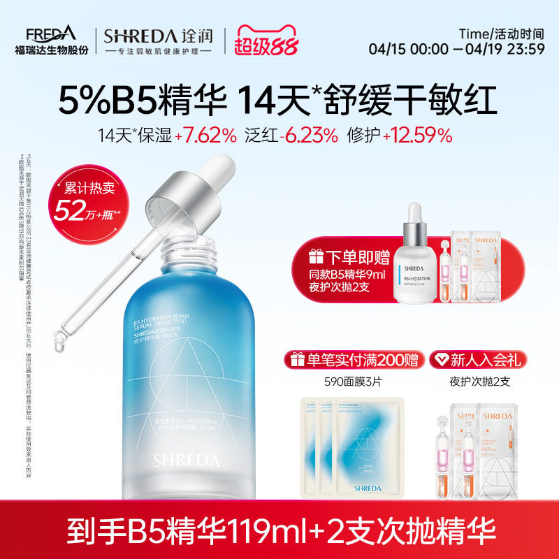 福瑞达诠润B5修护保湿精华液玻尿酸水润补水舒缓干皮泛红敏感肌