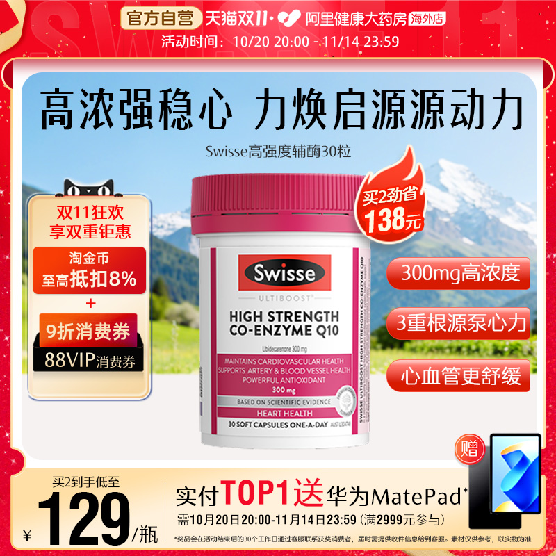 [直播]Swisse斯维诗辅酶Q10高含量健康心动力抗氧化备孕调理效期