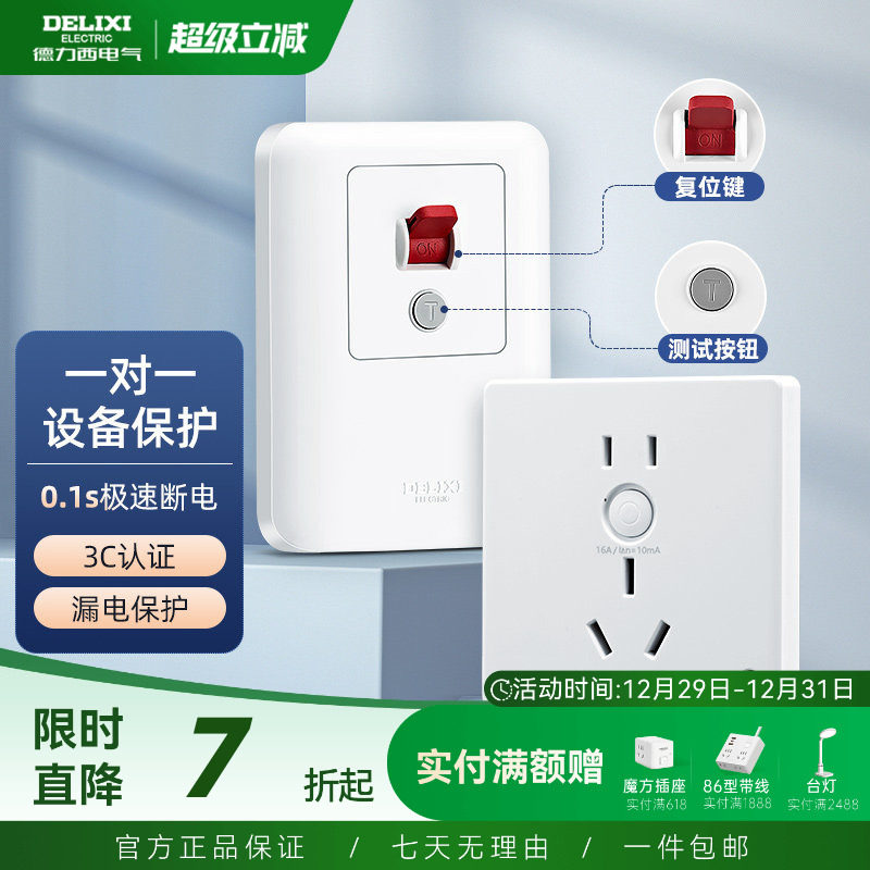 德力西开关漏电保护插座86型暗装空调16a家用32A电源漏保带开关