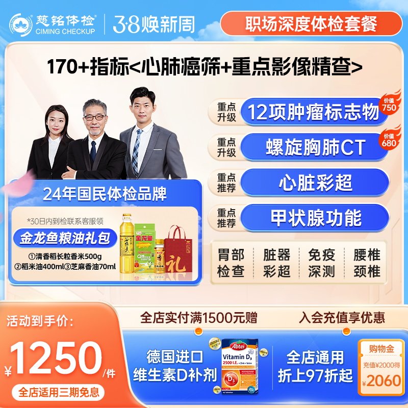 【职场深度体检套餐】慈铭体检肿标颈椎腰椎成人男女士通用体检卡