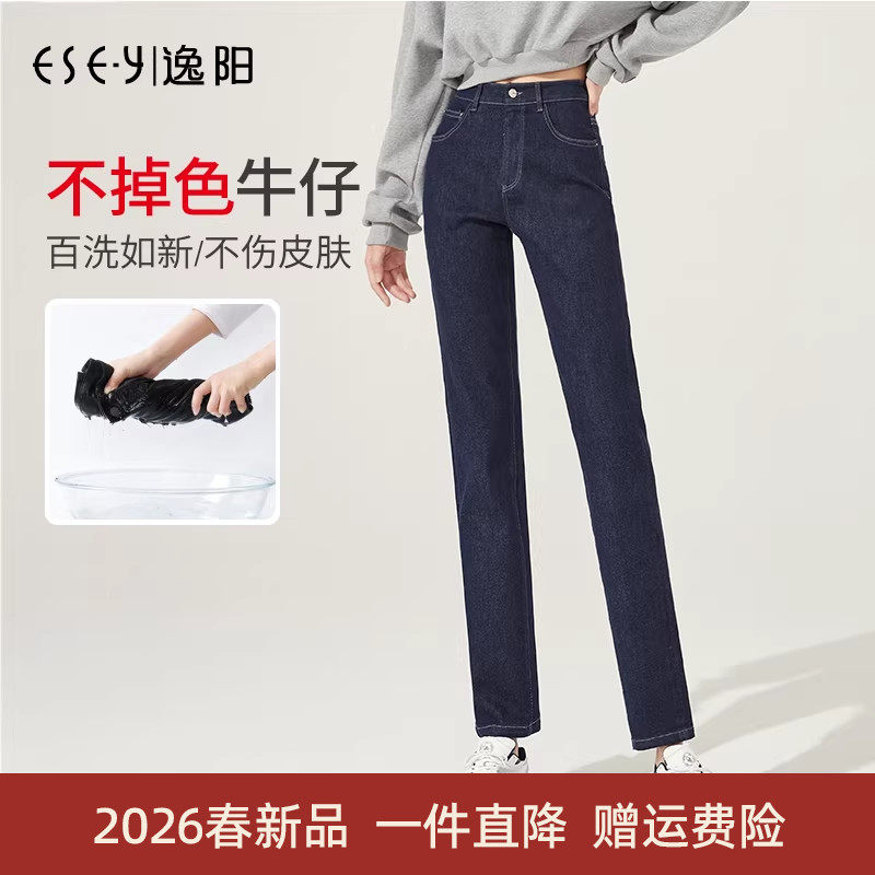 逸阳不掉色牛仔裤女2026春季新款显瘦高腰原深色烟管小直筒长裤子