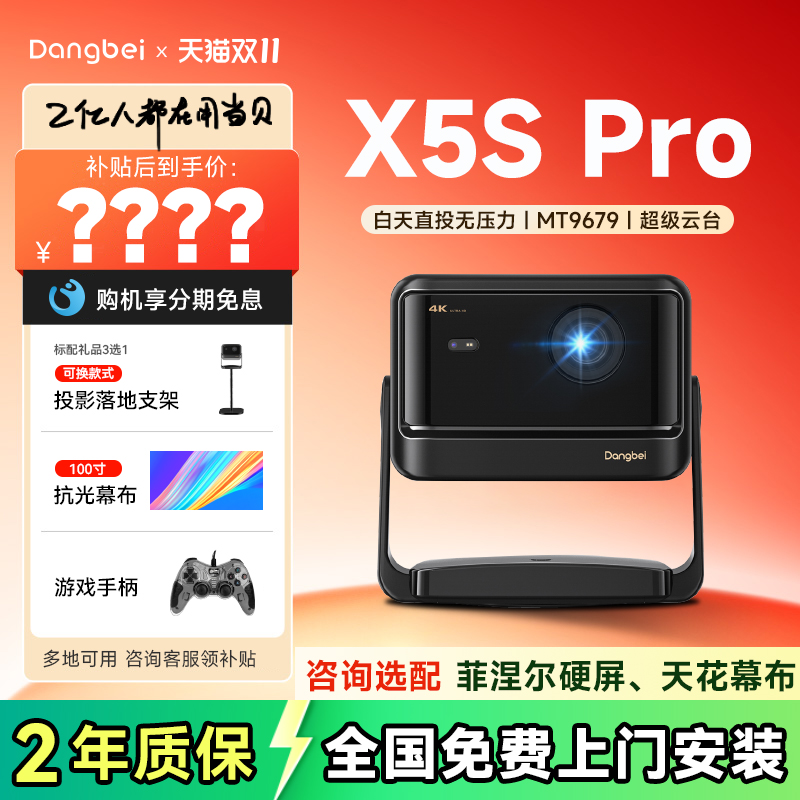 当贝X5S Pro激光云台max投影仪家用超高清激光电视投影机护眼客厅卧室游戏x