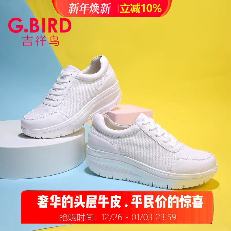 吉祥鸟超轻女鞋2026春夏真皮休闲运动百搭松糕摇摇小白鞋单鞋0710